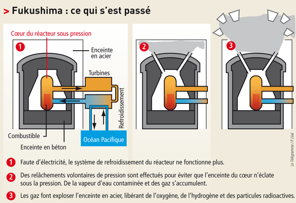 Cependant, la pratique semble ratrapper la théorie. En effet, le séisme s'étant déclaré le vendredi 11 Mars 2011, au large de sendai au Japon, semble avoir provoquer une fuite dans le réacteur. Un nuage de césium radioactif s'est échappé d'un réacteur de la centrale de Fukushima-Daiichi, et se disperse un peu partout au Japon.